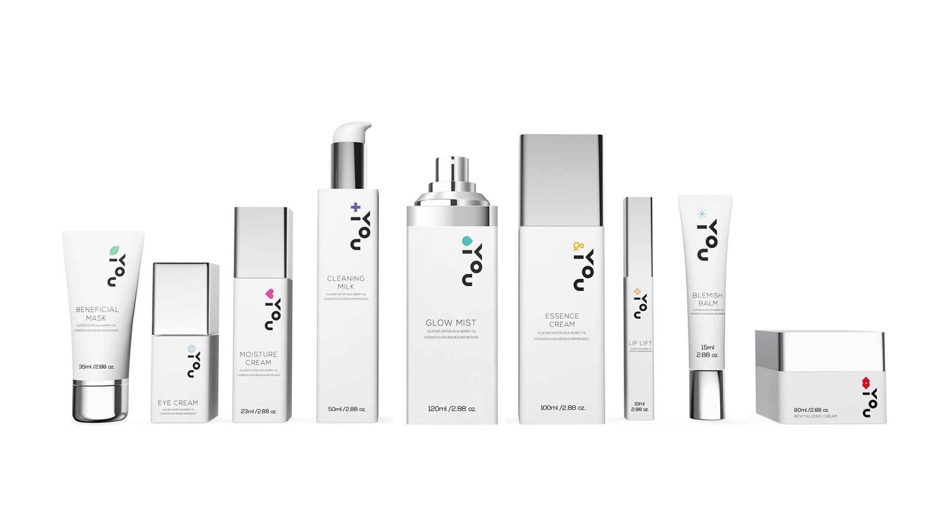 在包装设计上,我们将YOU的图形特点延展到其他字母上,开发出一系列与“YOU”主题相关,如“THANK YOU”的字母图形,从侧面让品牌形象更加丰满,并加深品牌与客户之间的情感连接。
